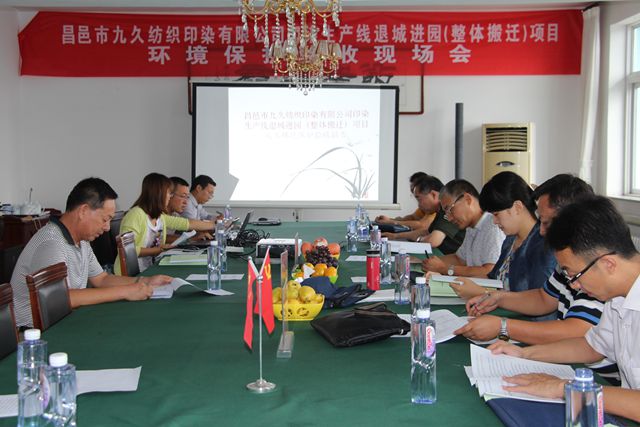 昌邑市九久纺织印染有限公司印染生产线退城进园(整体搬迁)项目竣工环保验收会”在九久公司举行。